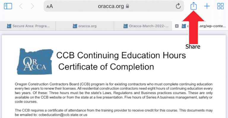Share your file. Tap the Share button located to the right of the web browser address bar at the top of your screen.